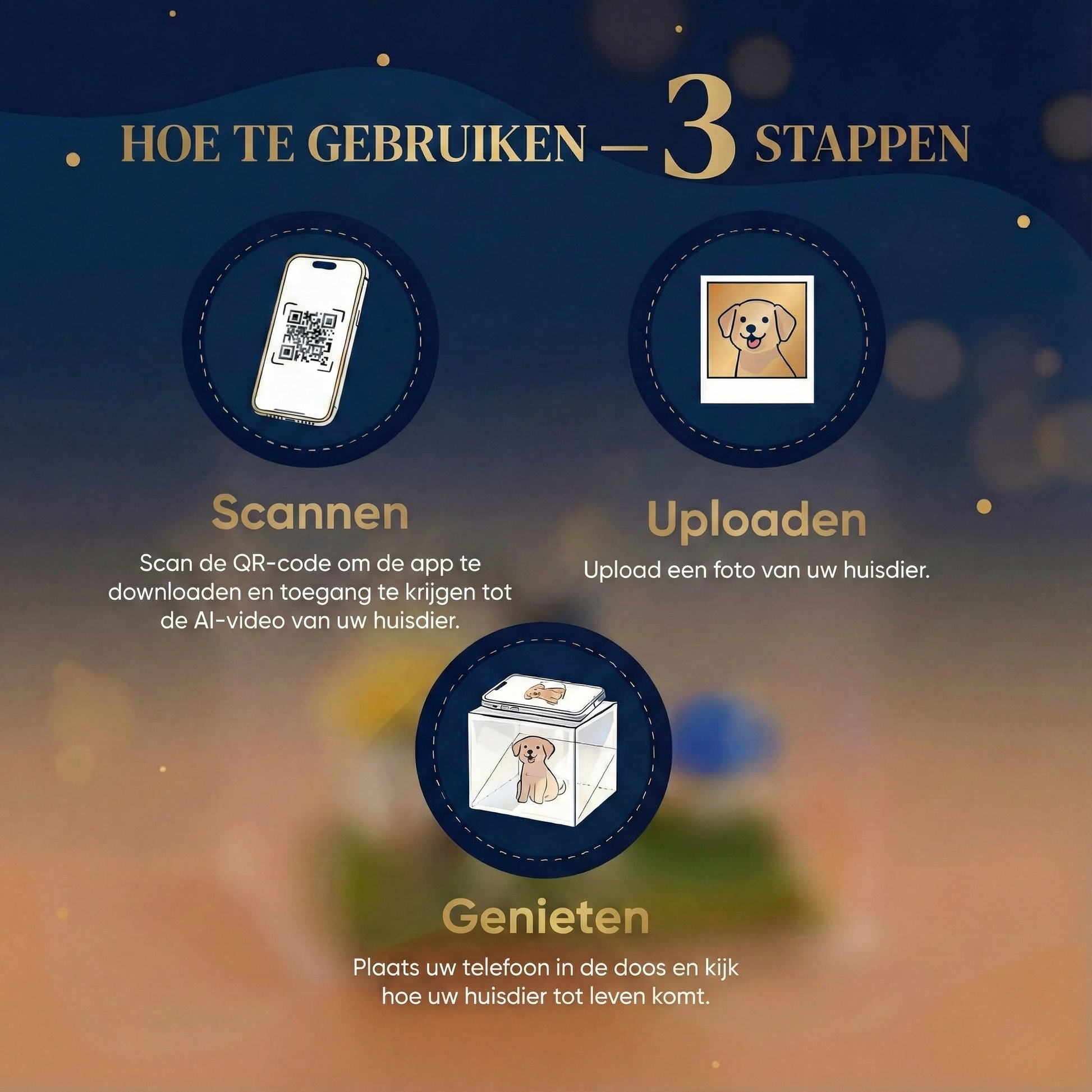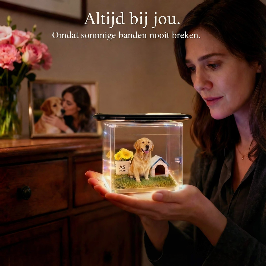 Het hologram gebruikt het scherm van je mobiel om een 3D-afbeelding van je huisdier in de doos te projecteren. Je kunt ermee interacteren via gebaren of aanrakingen, afhankelijk van het model dat je kiest.